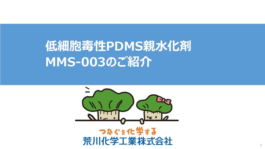 硬化前のPDMSに添加し、硬化することで親水性を付与できる添加剤「MMS-003」の製品紹介資料です。